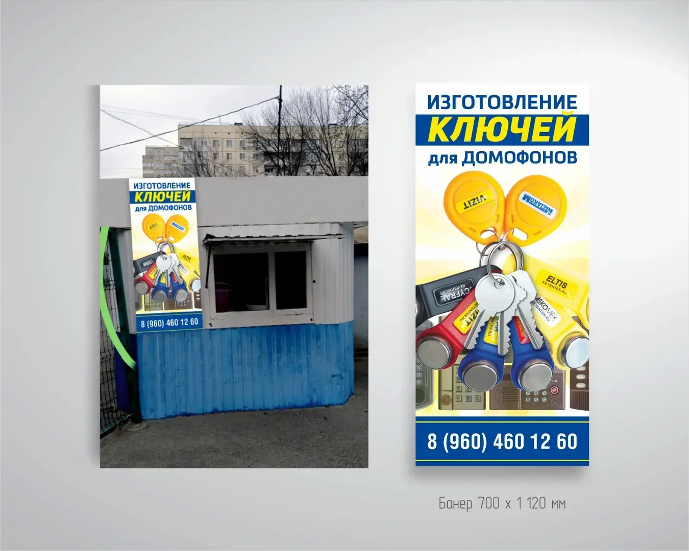 Дизайн, печать и монтаж баннера «Изготовление ключей для домофонов»