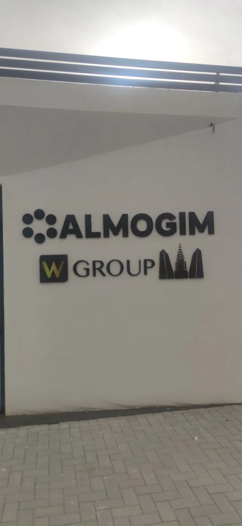 Перед вами пример корпоративной вывески с логотипами и названиями двух организаций — ведущего израильского застройщика Almogim Holdings Ltd. и партнёрской структуры W Group. Проект демонстрирует наш профессионализм в создании решений для крупных холдингов и публичных компаний, где важны солидность, узнаваемость бренда и чёткая визуальная идентификация.