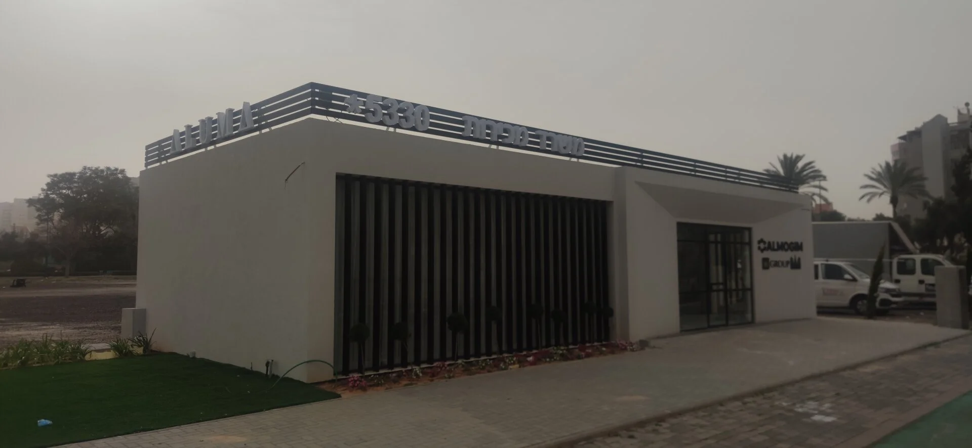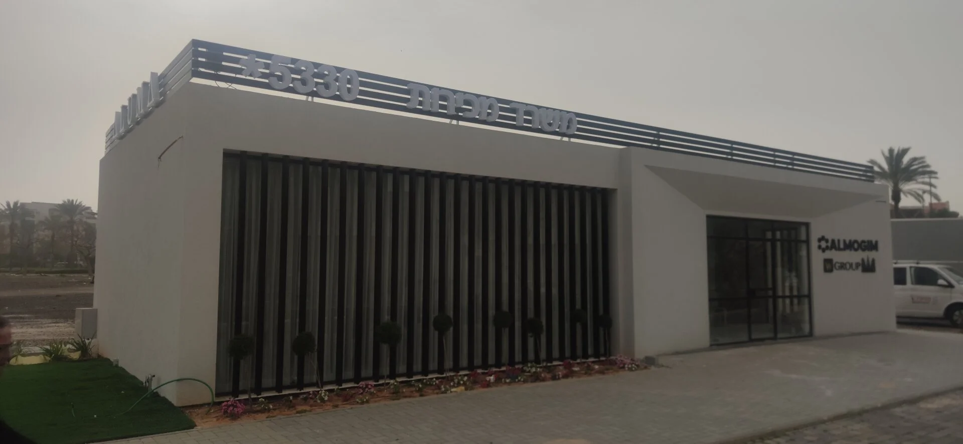 Корпоративная вывеска с логотипами Almogim Holdings Ltd. и W Group