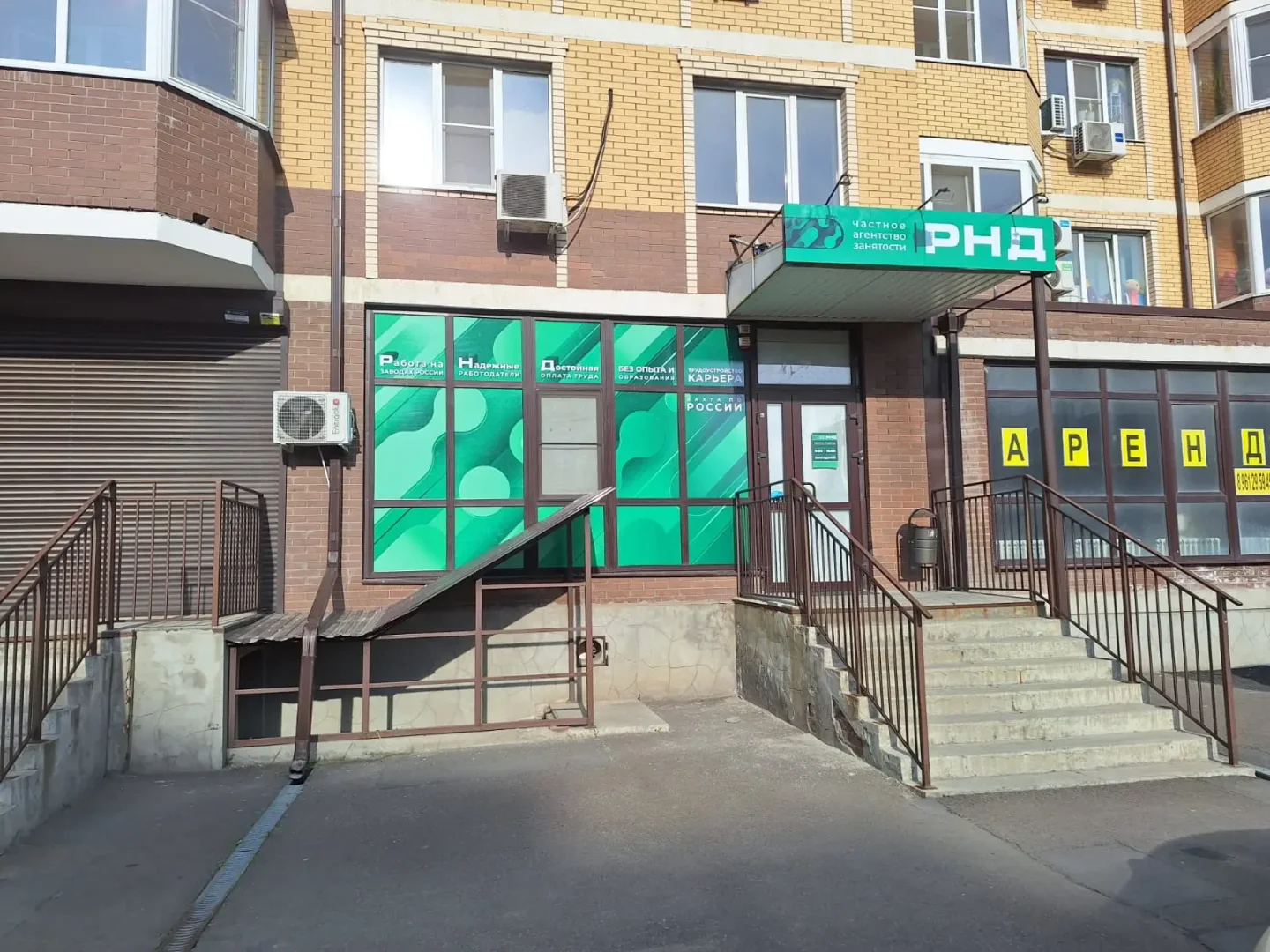 📍 Ростов-на-Дону, ул. Тружеников, 39/3 — частное агентство занятости «РНД» (стеклянные витрины, фасад)