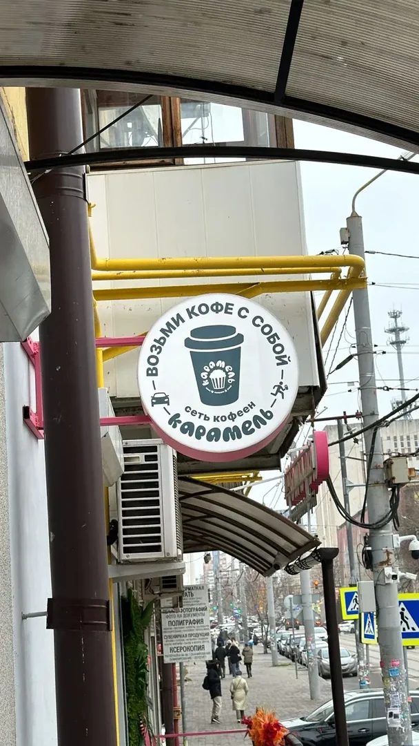 📍 Ростов-на-Дону, центральный район — фасад здания кофейни «Карамель» (сеть кофеен)