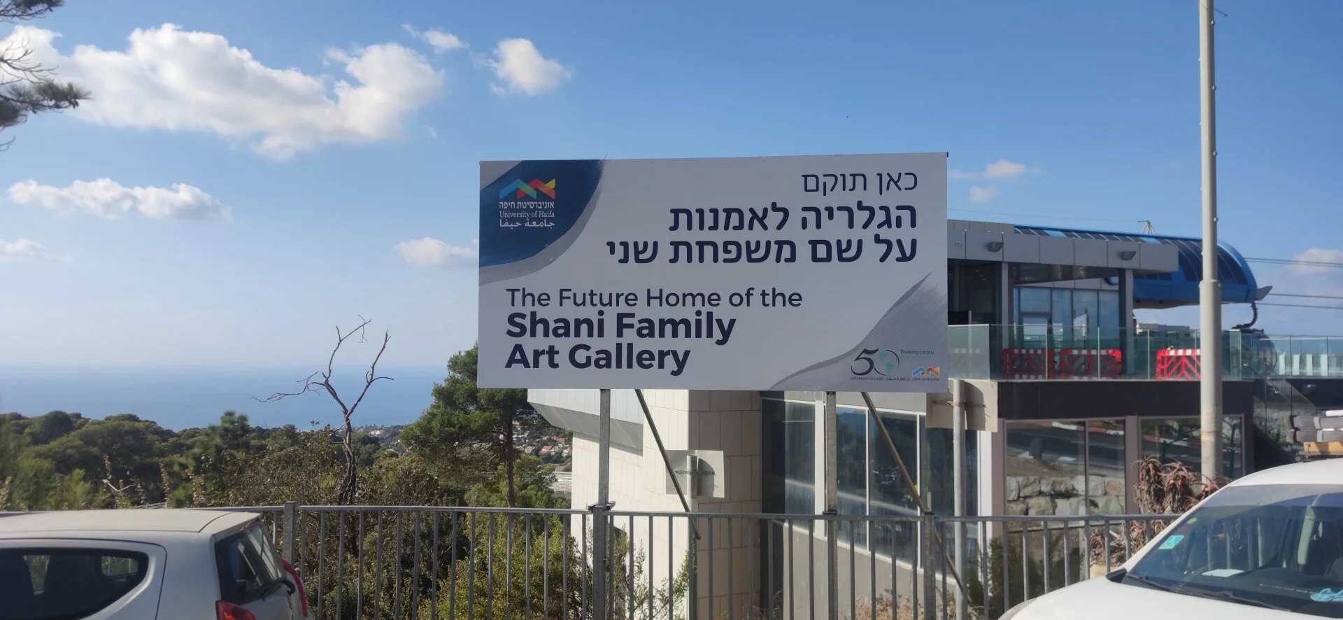 Перед вами пример информационного щита, анонсирующего будущее расположение художественной галереи семьи Шани (Shani Family Art Gallery) при Университете Хайфы. Этот проект демонстрирует наш профессионализм в создании наружной рекламы для культурных и образовательных учреждений, где важны не только информативность, но и эстетика, гармония с окружением и работа с двуязычным контентом.