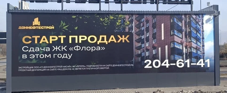 Опыт создания наружной рекламы для строительной компании «Доннефтестрой» с анонсом продаж ЖК «Флора».