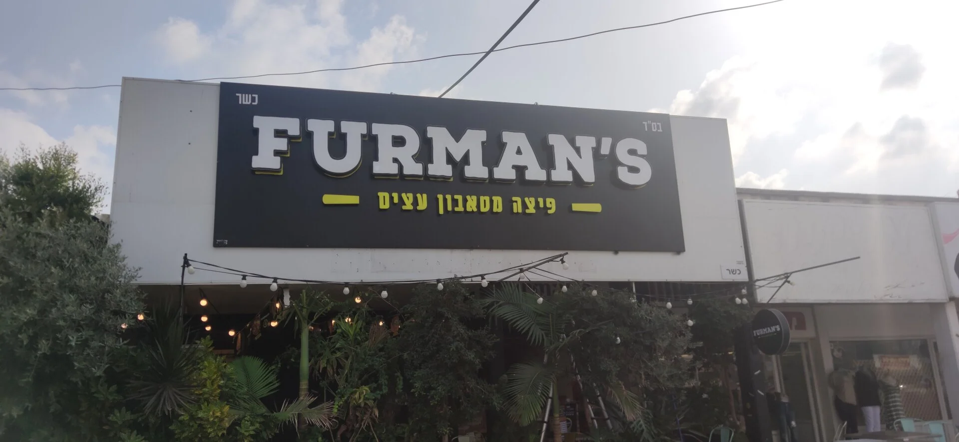 На фото — результат нашего профессионального подхода к изготовлению и монтажу наружной рекламы. Вывеска для заведения «Furman's» выполнена в современном минималистичном стиле с продуманной цветовой гаммой и чёткой информационной структурой.