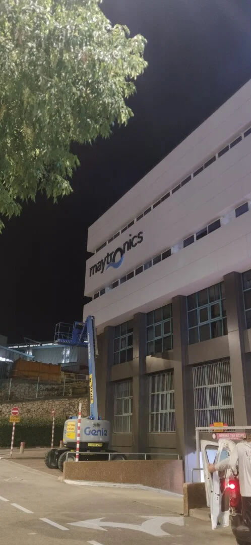 Перед вами пример корпоративного брендирования фасада для израильской компании Maytronics. Этот проект демонстрирует наш профессионализм в работе с крупными корпоративными клиентами, умение создавать лаконичные, но запоминающиеся решения и интегрировать вывеску в архитектуру здания без нарушения эстетики.