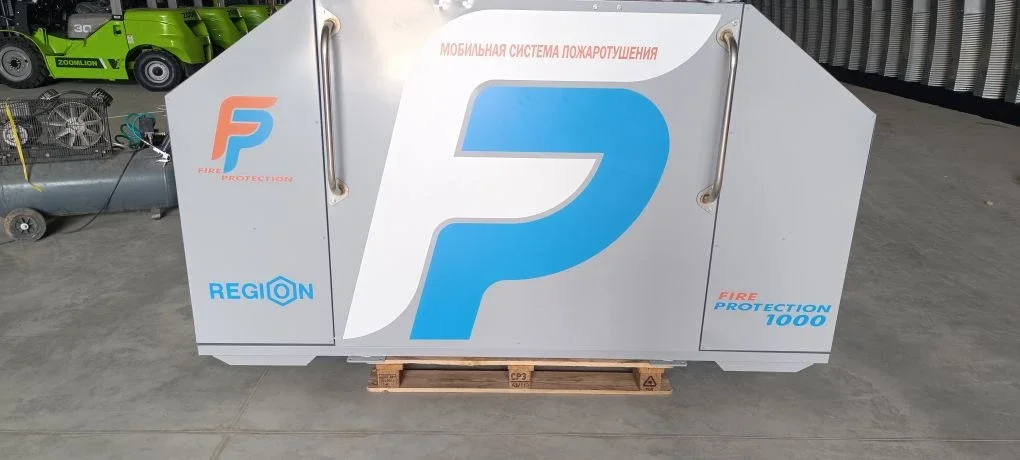 Опыт нанесения корпоративной символики и маркировки на металлические корпуса мобильных систем пожаротушения.