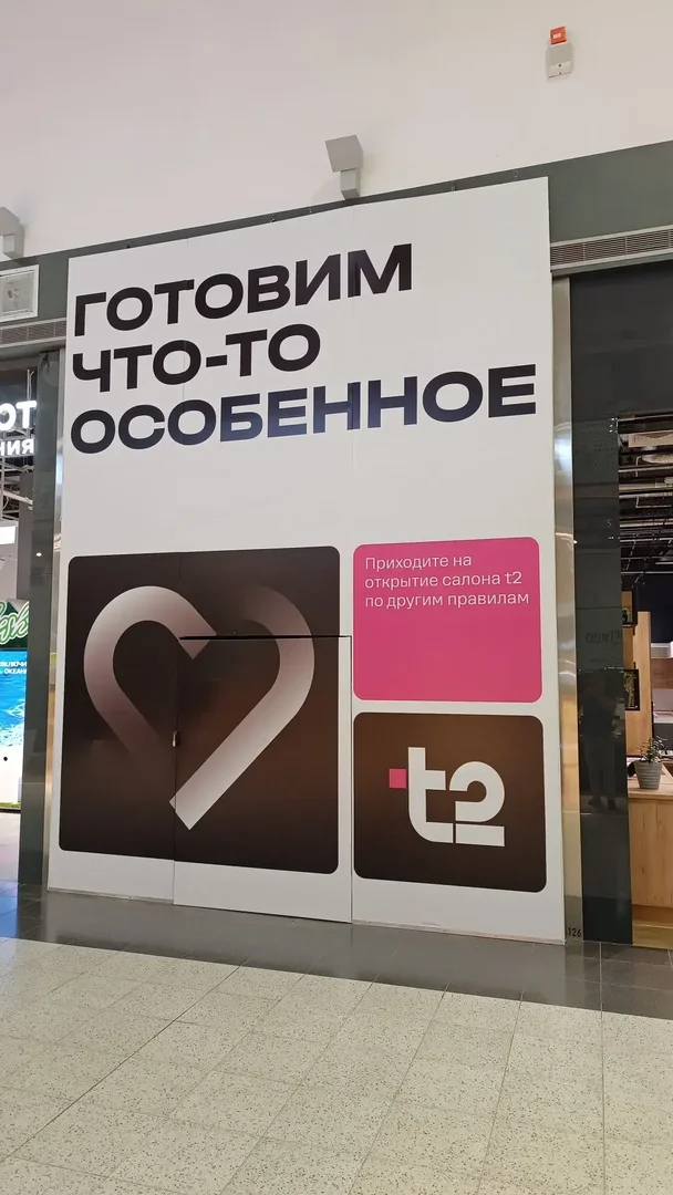 🏪 Близость к точке открытия: стенд находится рядом с будущим салоном t2.