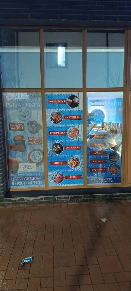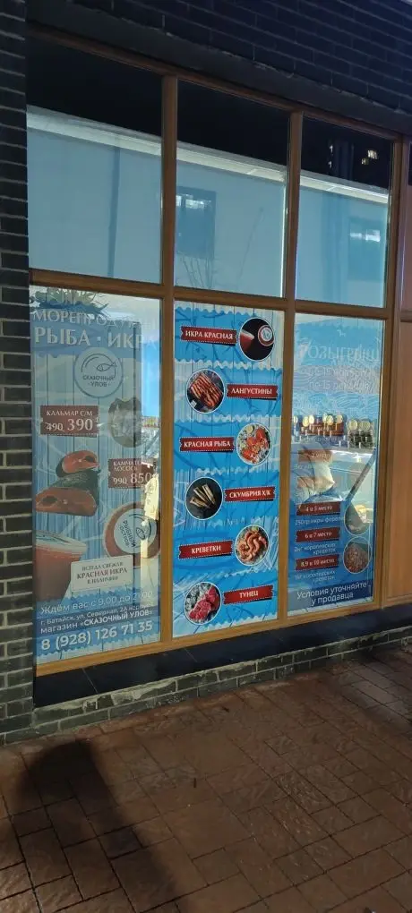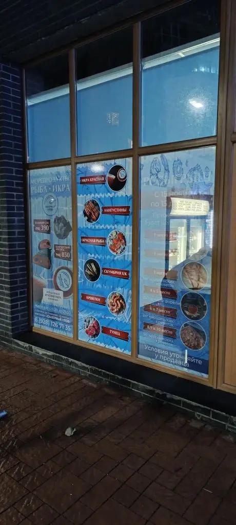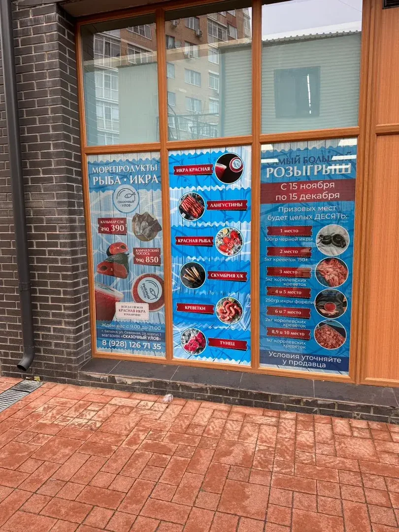 📍 г. Батайск, ул. Северная звезда, 2А, корп. 1 — магазин морепродуктов «Сказочный улов» (витрина, стены)