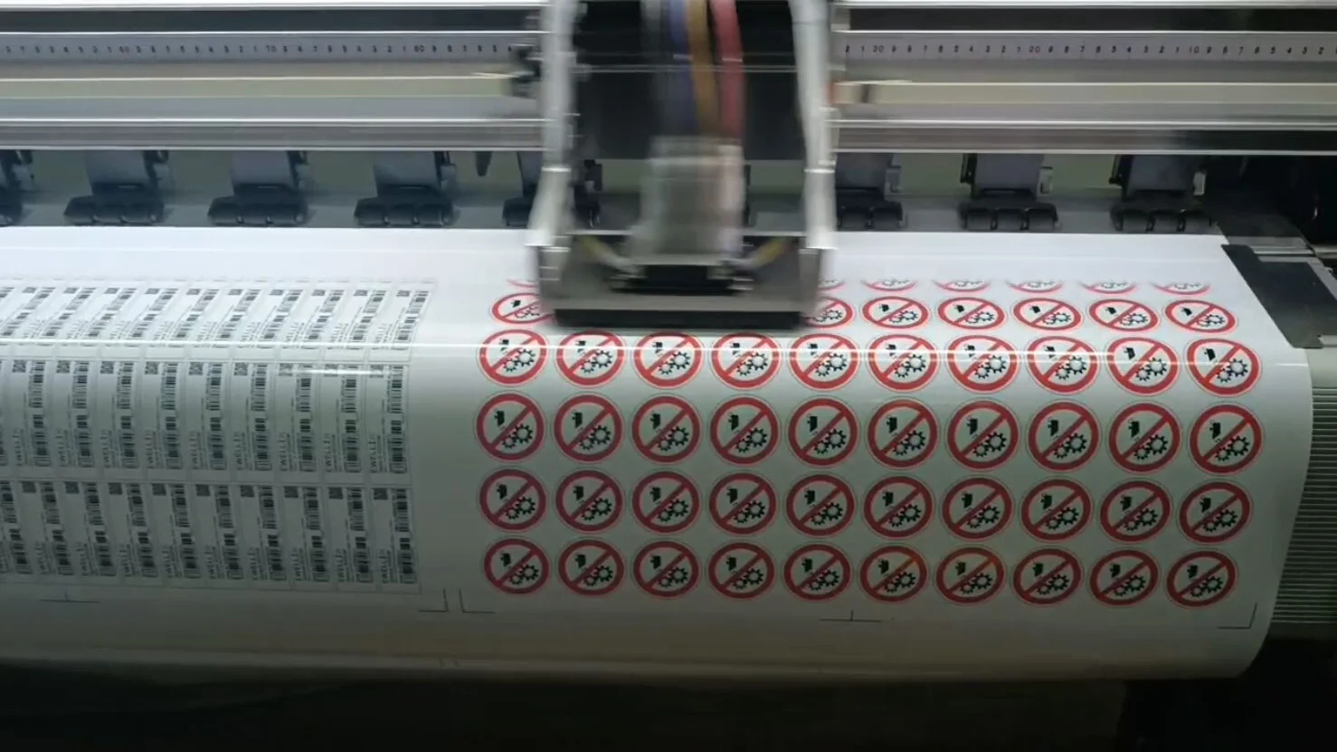 Представляем комплексную услугу по печати и плоттерной резке стикеров для промышленной маркировки, безопасности и учёта. На фотографии и видео запечатлён процесс изготовления двух типов наклеек: предупреждающие знаки (красный круг с перечёркнутым символом человека и шестерней) для обозначения опасных зон, а также информационные стикеры с названием бренда, моделью, серийным номером и штрихкодом (например, «EWELLIX Garland 4530036»). Производство ведётся на профессиональном оборудовании — широкоформатный принтер и плоттер с ЧПУ. Мы берём на себя всё: дизайн, печать, контурную резку, упаковку в рулоны. Готовые стикеры устойчивы к влаге, ультрафиолету и механическим воздействиям, подходят для нанесения на металл, пластик, стекло.