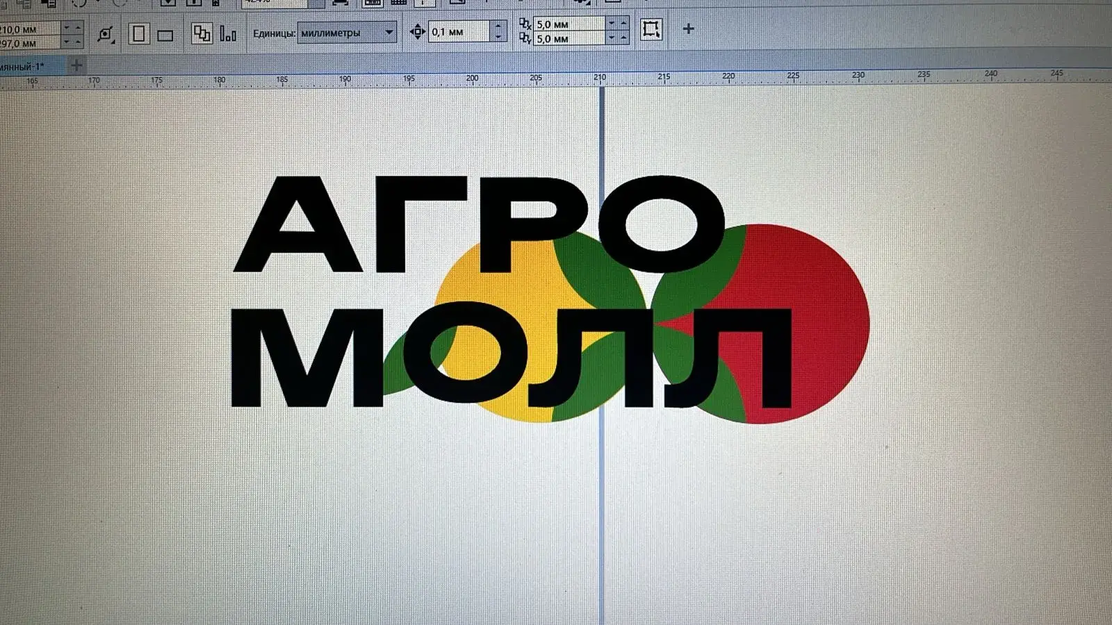 Поэлементная прорисовка надписи «АГРО МОЛЛ» и трёх кругов (жёлтый, зелёный, красный). Восстановлены пропорции и взаимное расположение.