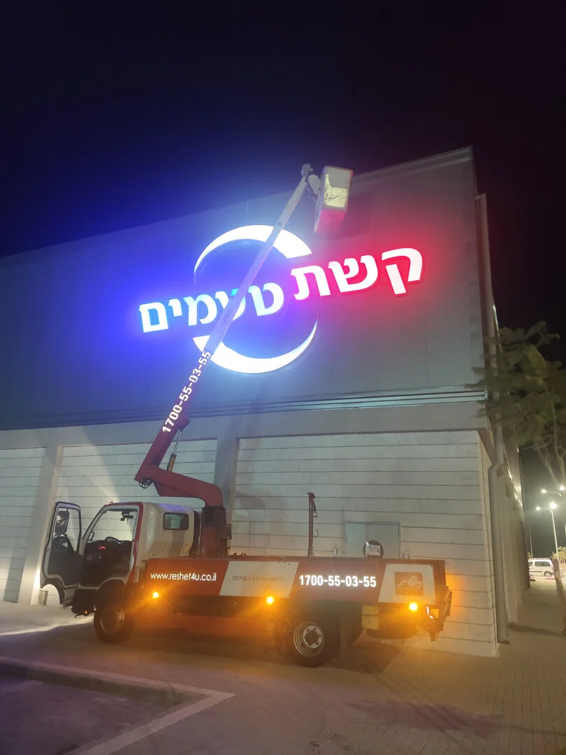 Перед вами пример премиальной световой вывески, установленной на фасаде современного здания в Израиле. Этот проект демонстрирует наш профессионализм в создании крупноформатных световых решений для корпоративных клиентов.