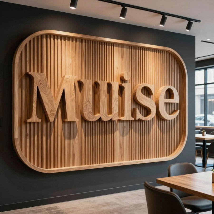 Массив, фанера, МДФ, ДСП. Для интерьеров, ресторанов, кафе, премиальных вывесок. Теплые, натуральные материалы.